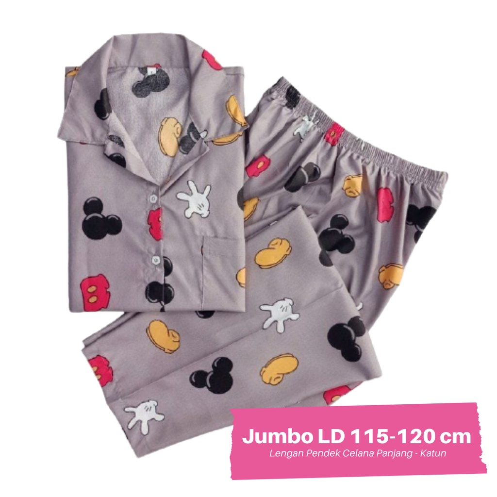 PIYAMA DEWASA JUMBO CP LD 120 cm big size lengan pendek celana panjang lucu