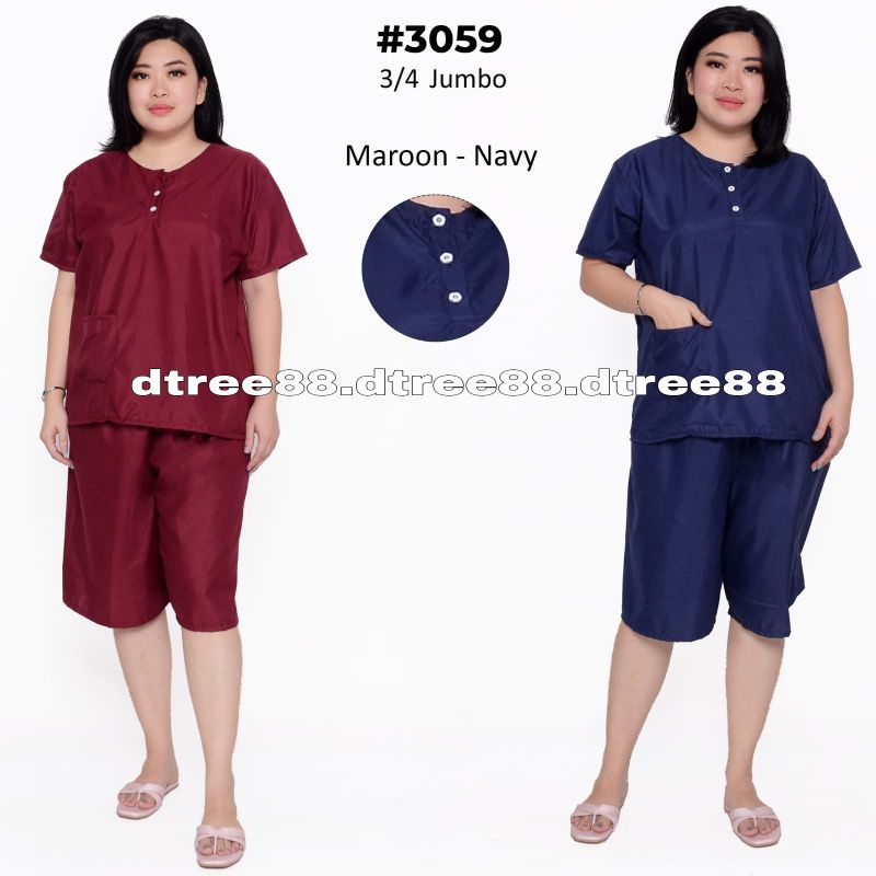 Dtree . Piyama stelan pendek jumbo katun eropa polos baju tidur kancing depan Ld 120 cm