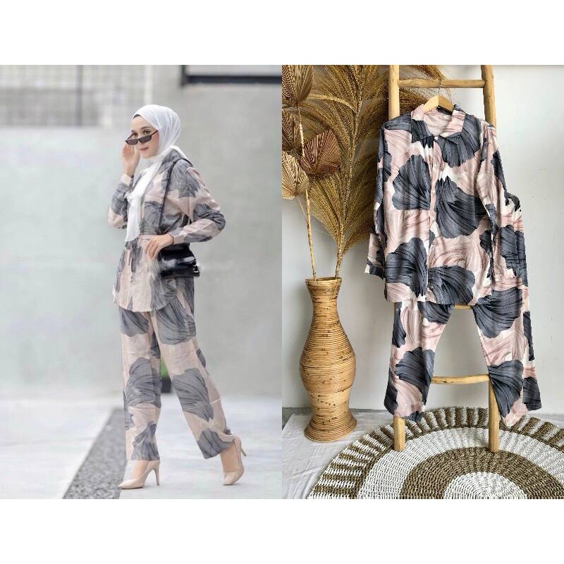 ONE SET PANJAMAS BUSUI || LD 105 -108 || STELAN WANITA || ONE SET RAYON MOTIF KEKINIAN