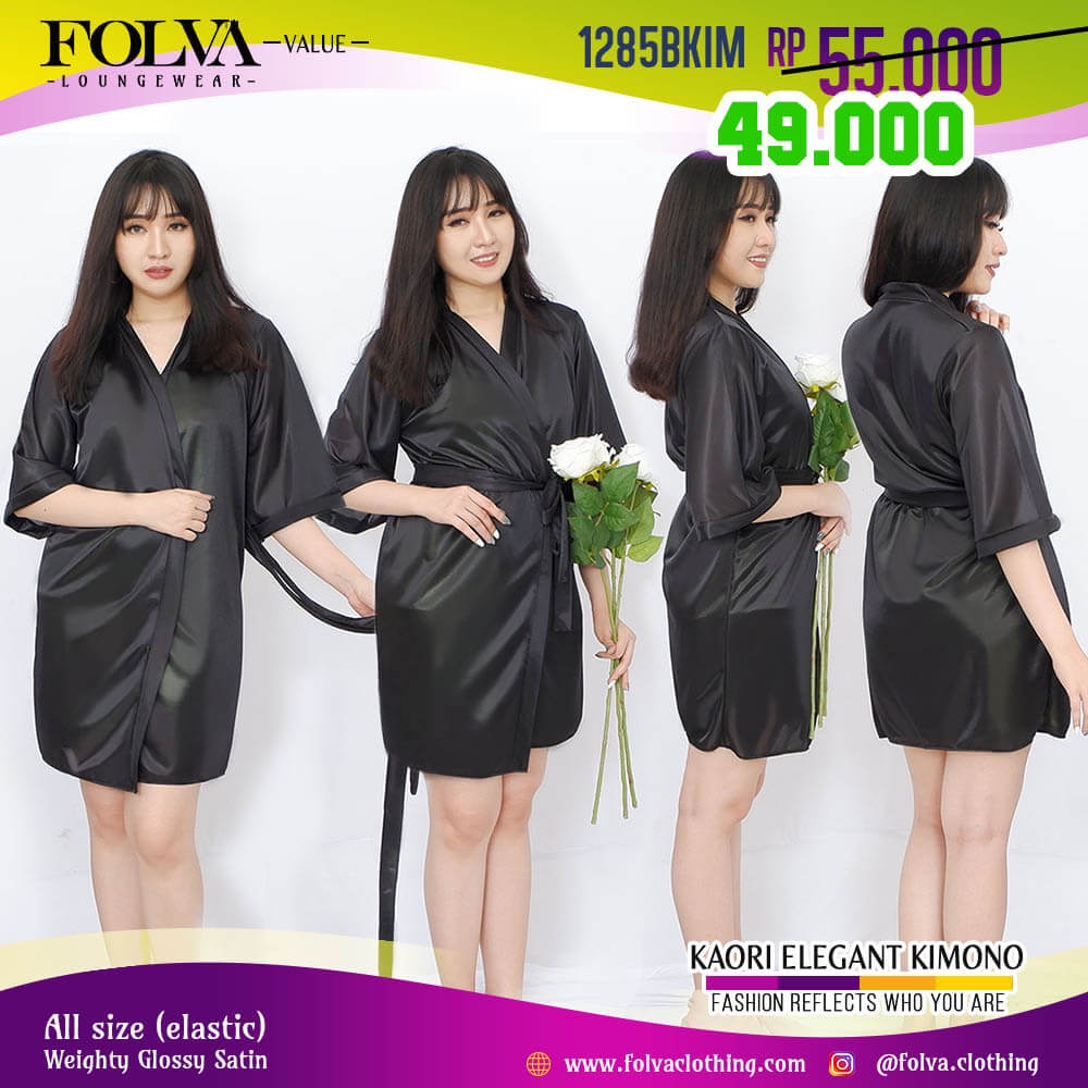 FOLVA kimono baju tidur satin 1285BKIM hitam all size