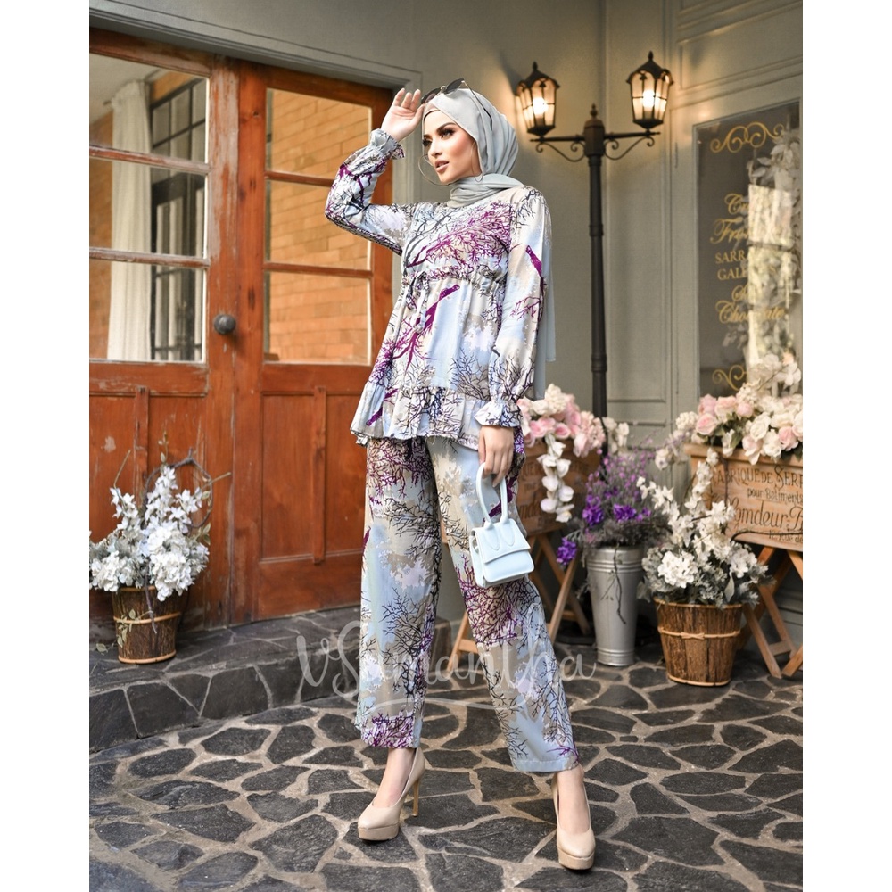 vSamantha - Pajamas Set / Piyama Set Muslim Rayon Rempel Busui Friendly - Tangan Panjang
