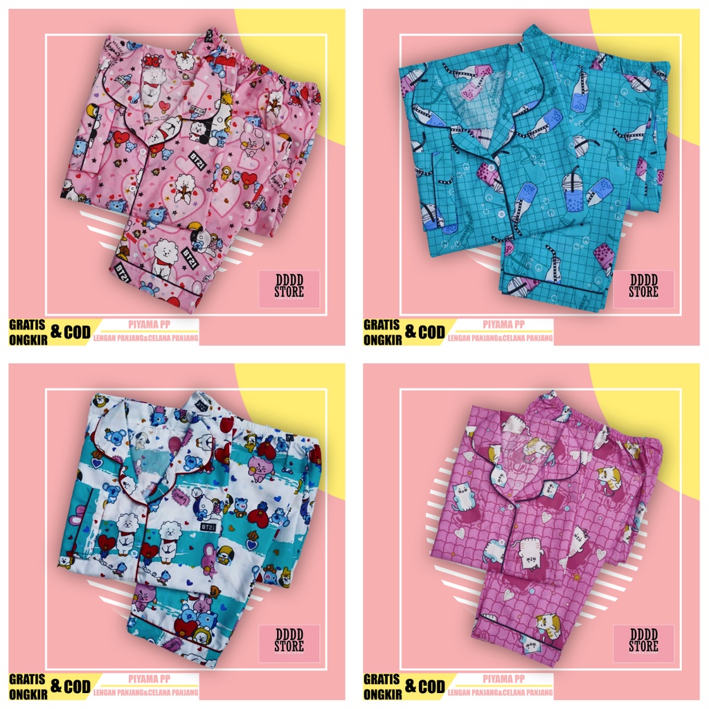 BAJU TIDUR WANITA LENGAN PANJANG / SETELAN PIYAMA WANITA KATUN MOTIF PP