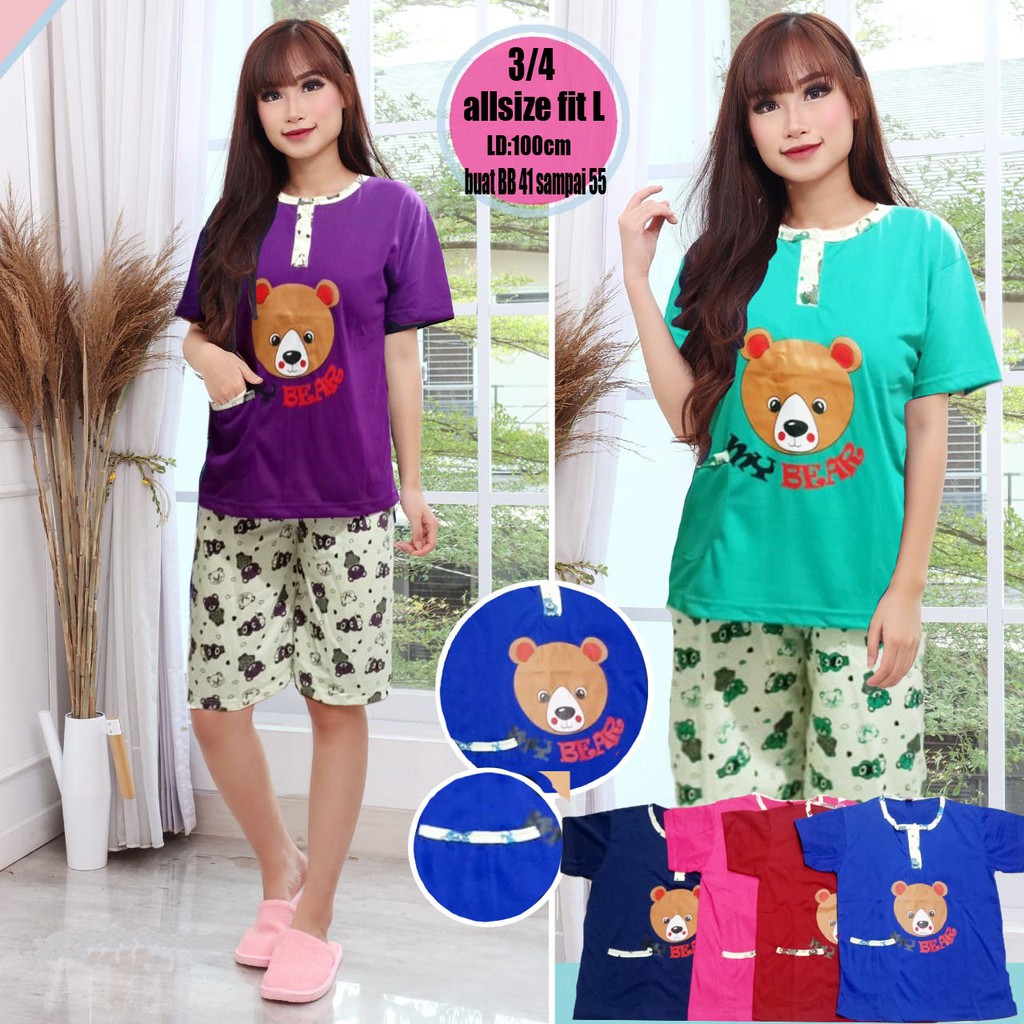 Harga Hokyclothing.Baju Tidur Wanita Celana 3/4 Allsize Piyama Termurah Bahan Kaos Polester