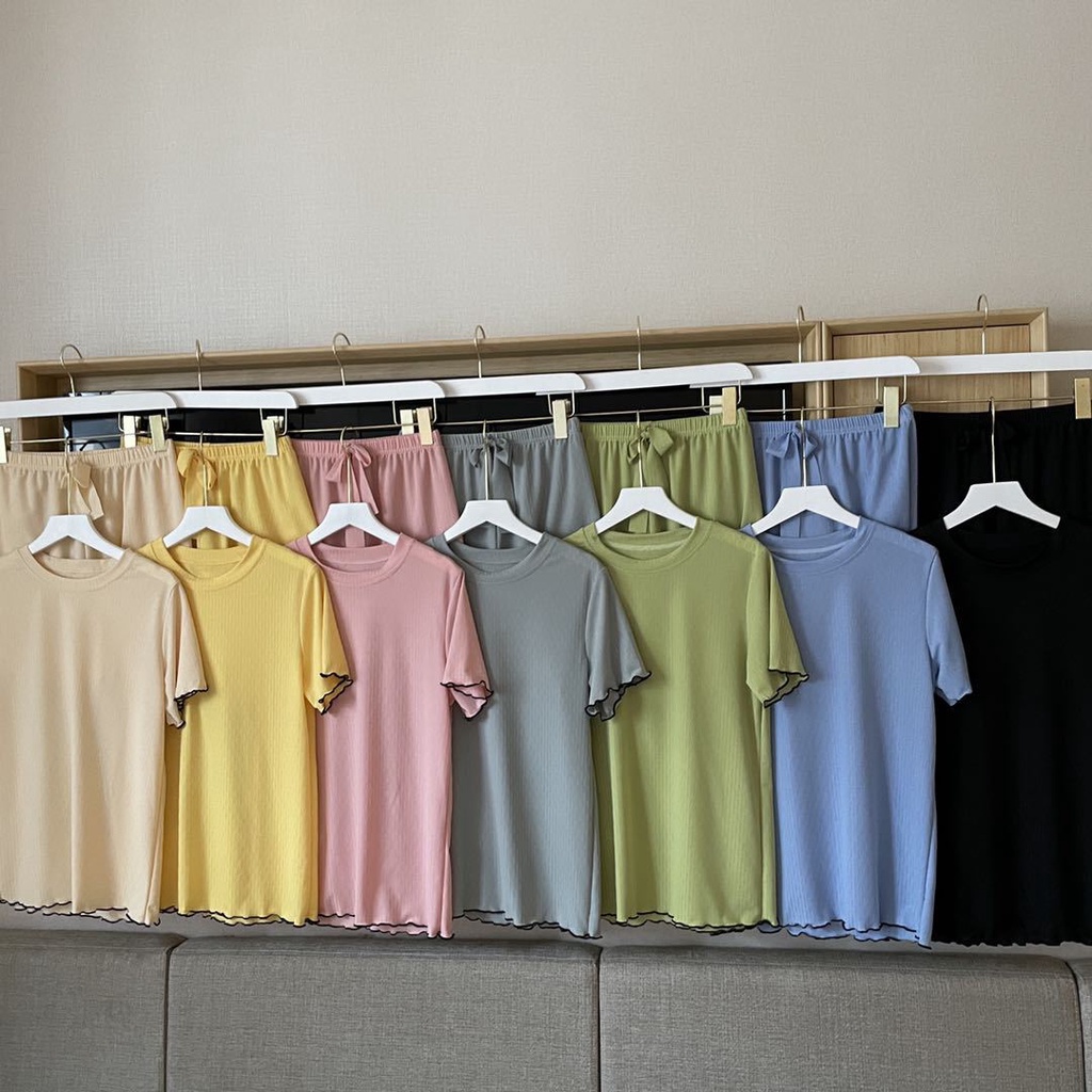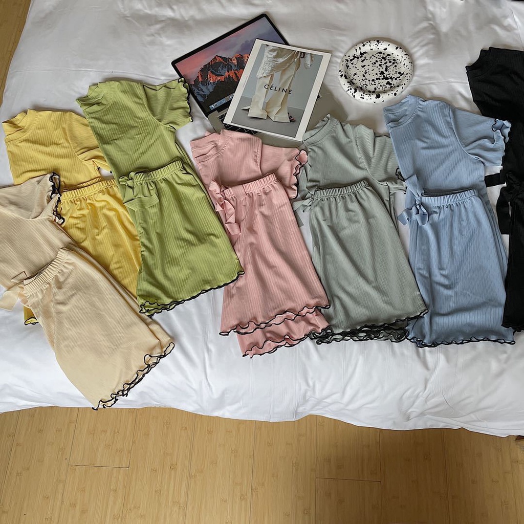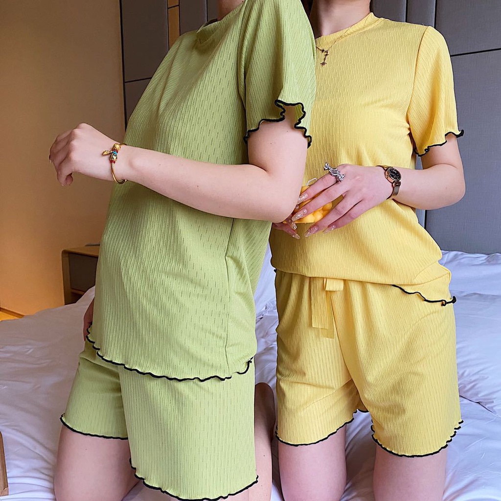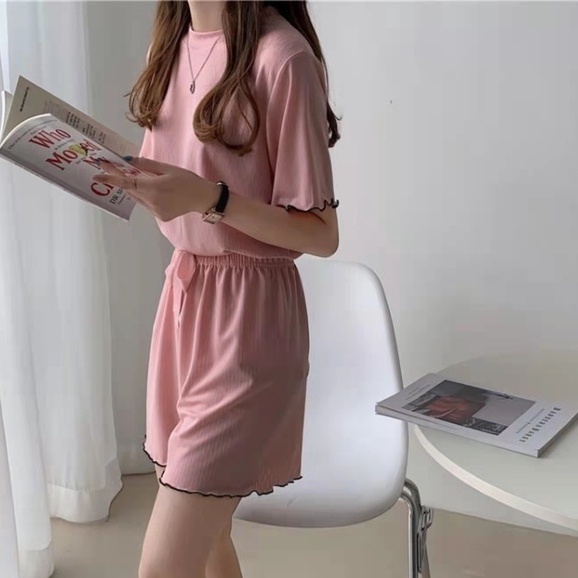 vSamantha - One Set Piyama Rayon Pendek Ruffle Kirei